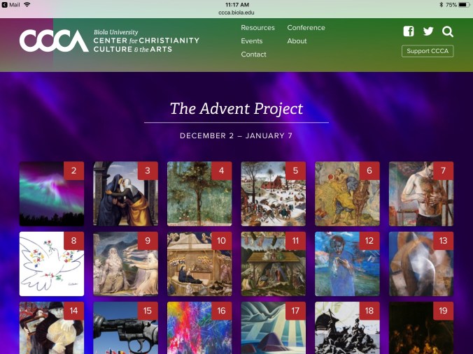 Here’s the link to the Advent Project from Biola University’s Center for Christianity, Culture and the Arts. There’s a button that will allow to you see thumbnails of every piece. Here’s how I enjoying them best: Clear away distractions from where you’re sitting. Light a candle and just be quiet for a few minutes. Have a means for journaling nearby – you’ll have lots of thoughts to process because each piece is just packed with artful/thoughtful elements. Look at the painting for a few minutes. Read the poem. Reflect. Turn on the music and keep enjoying the curator’s reflections. Enjoy! No Christmas isn’t over!