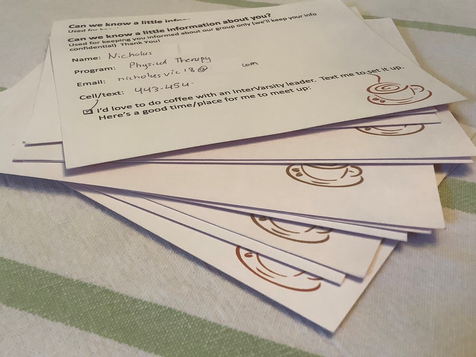Pry also for this stack of cards! For the students whose names are on them, that is. This is what we have to re-start our fellowship this fall at Creighton. Last year we were a virtual community of at most 10 students. I met with three of those students for leadership, encouragement and prayer. The rest we met up with via our zoom bible study in the book of Ruth. We’re hoping to rebuild in-person community this fall. We’ll be meeting on the first and third Thursdays of the month. We’ll meet in-person for the first gathering, share some food and enjoy being together to do our bible study. The second meeting of the month will be virtual via zoom. We’re hoping to include distance students and alumni at our virtual gatherings.