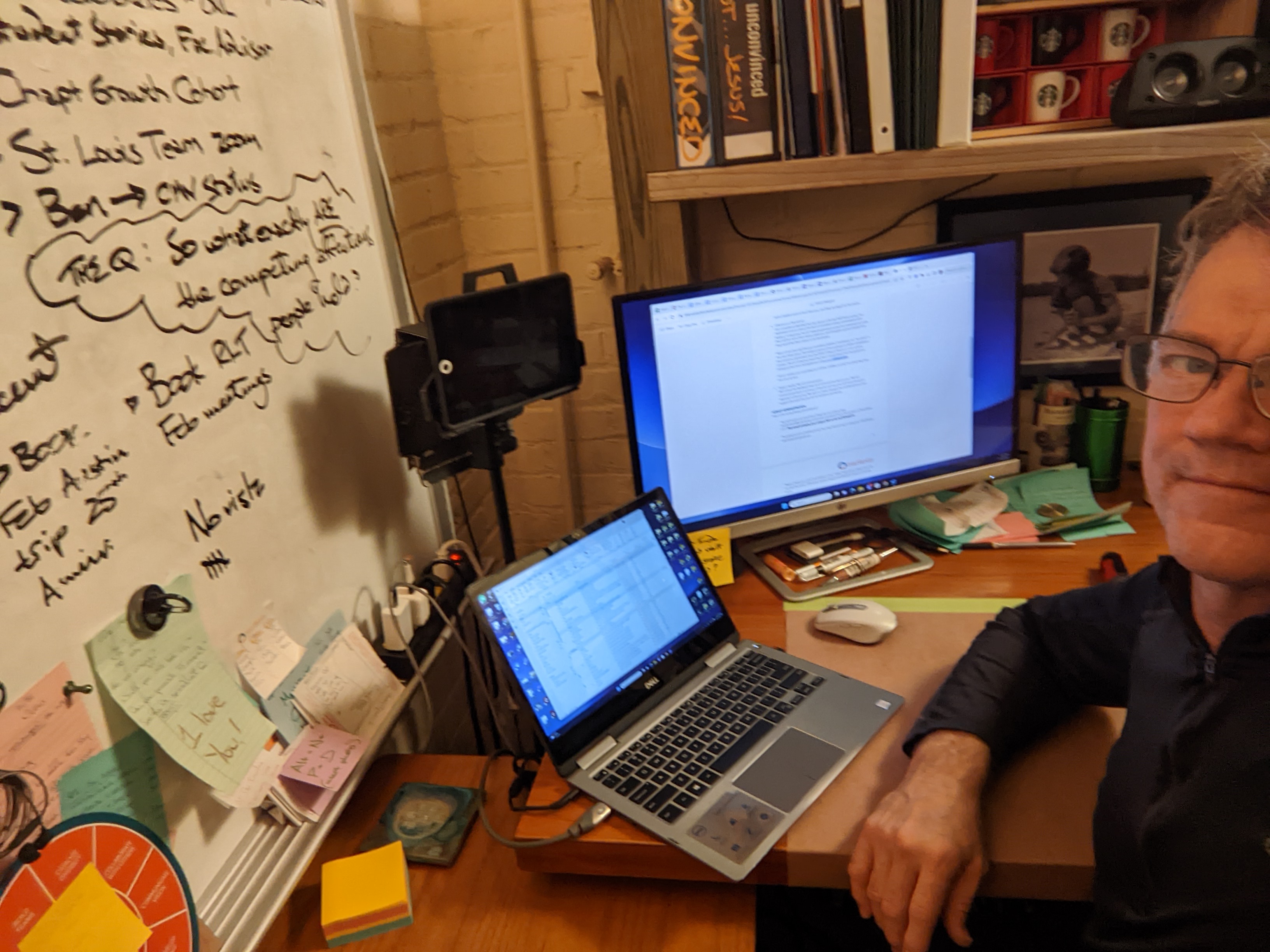 I have about 10 minutes to write this blog. So it will be very short. In about an hour and a half, a group of 30 InterVarsity students, faculty and staff will be gathered for a holiday progressive dinner. I will be sharing an Advent devotional. Rather than talk a lot about it, here’s the mad genius himself at work at his white-board. You can probably figure it out from my scrawlings.