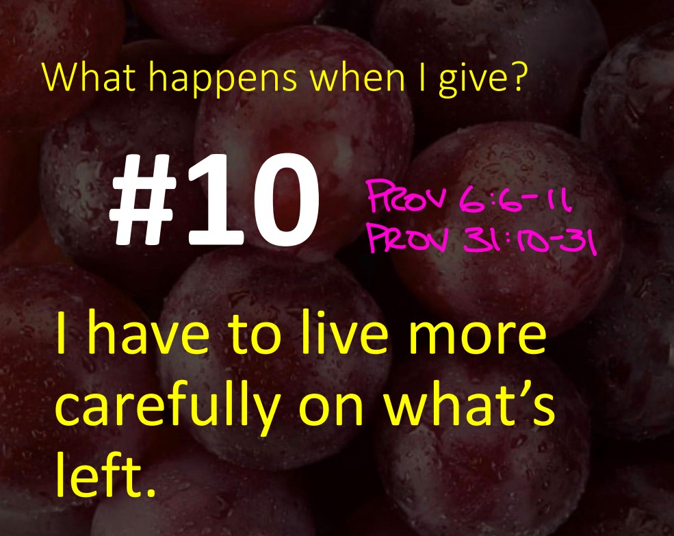 Below is the message I gave that Sunday. I offer it here believing for certain that no PBR reader in their right mind will want to listen to a ten-point sermon on giving! May the Lord be with you if you do. BUT, it was merely a punchy summary of what Roo and Dawn had already spent a couple of months teaching about leading up to that week.