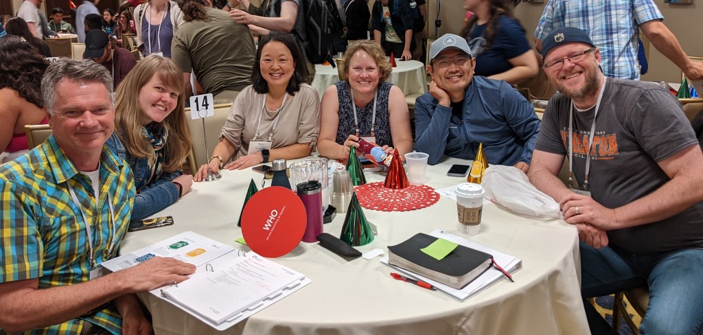 Happy Father’s Day, y’all, by the way! I am coming to you this morning from Madison, Wisconsin where I am serving as program staff for ONS (Orientation to New Staff). This year GFM welcomes 11 new staff at ONS. You’ve heard me talk about my staff recruiting needs this year. When a potential staff member winds up saying YES to InterVarsity, it’s often a not so brief on-ramp to actual employment with IV. The first steps are provision appointment and support raising. So the five staff in my small group (the pic where we’re around a table) have been making the trek to paid staff and are enough on-board to be welcomed to this year’s ONS.