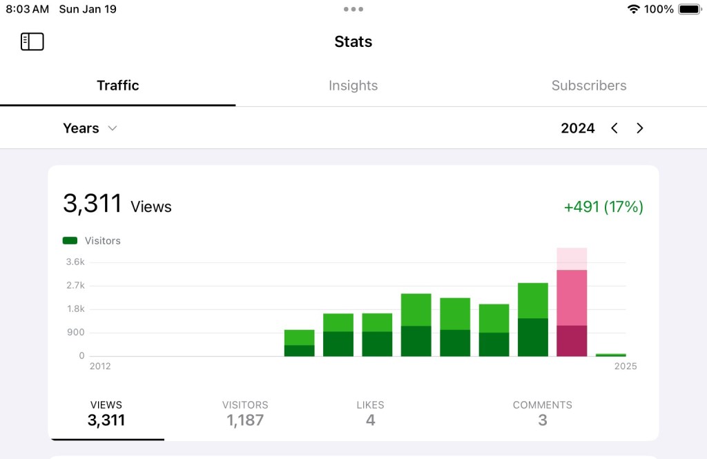 Thank you for clicking those links and reading my posts! Thank you for praying! 2024 was the first year the blog received over 3,000 views! That’s terrific considering the fact that those views are logged by PBR readers who know me face to face. Thank You!