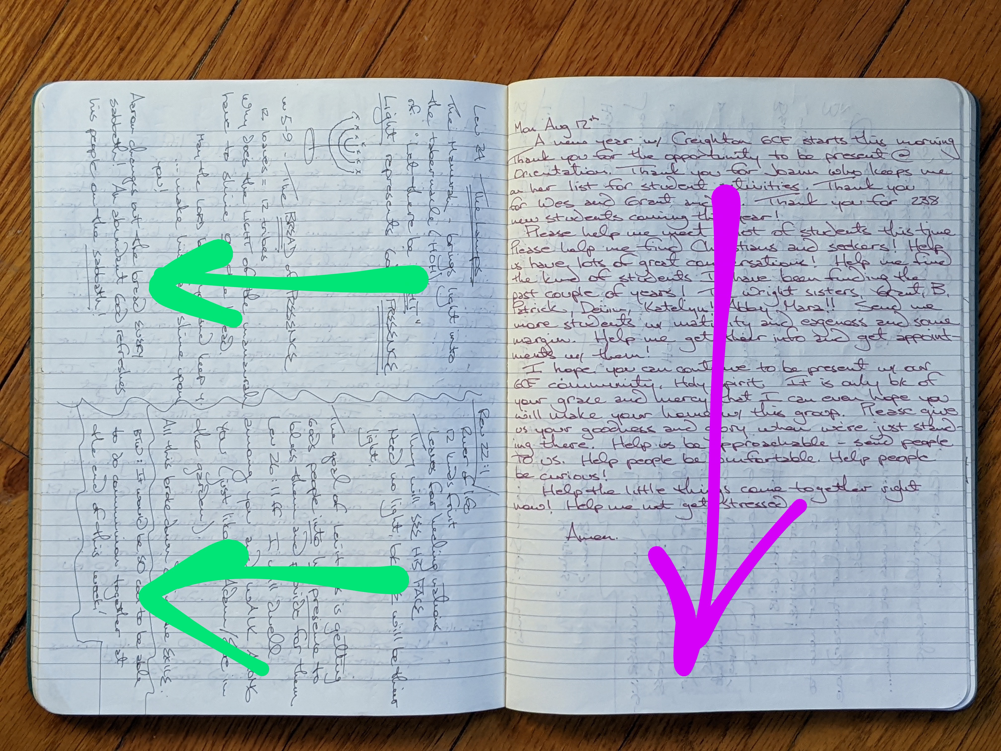 - Last thing. The journal turned sideways (left side). is easier to take notes in while I’m sitting somewhere other than my desk.