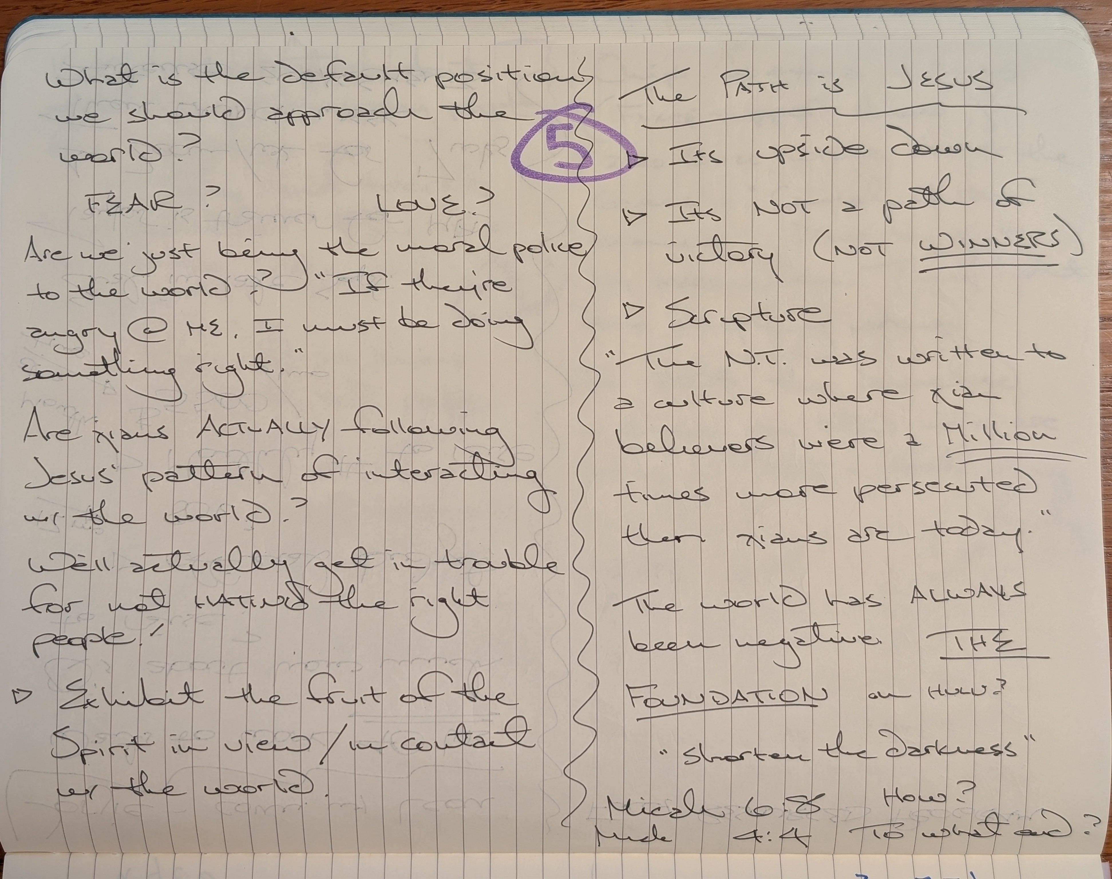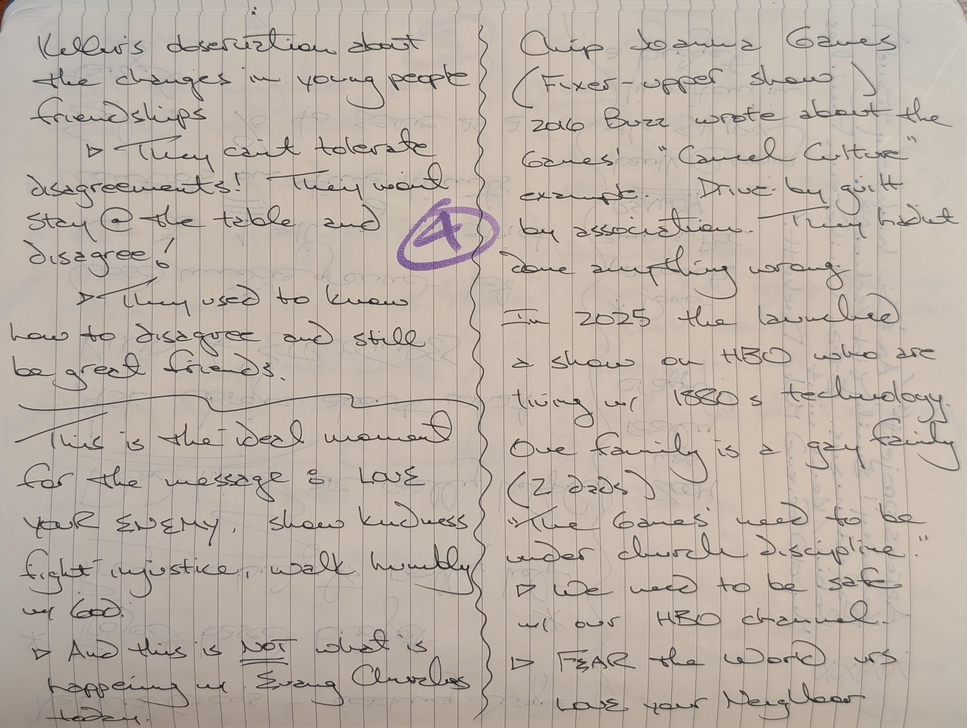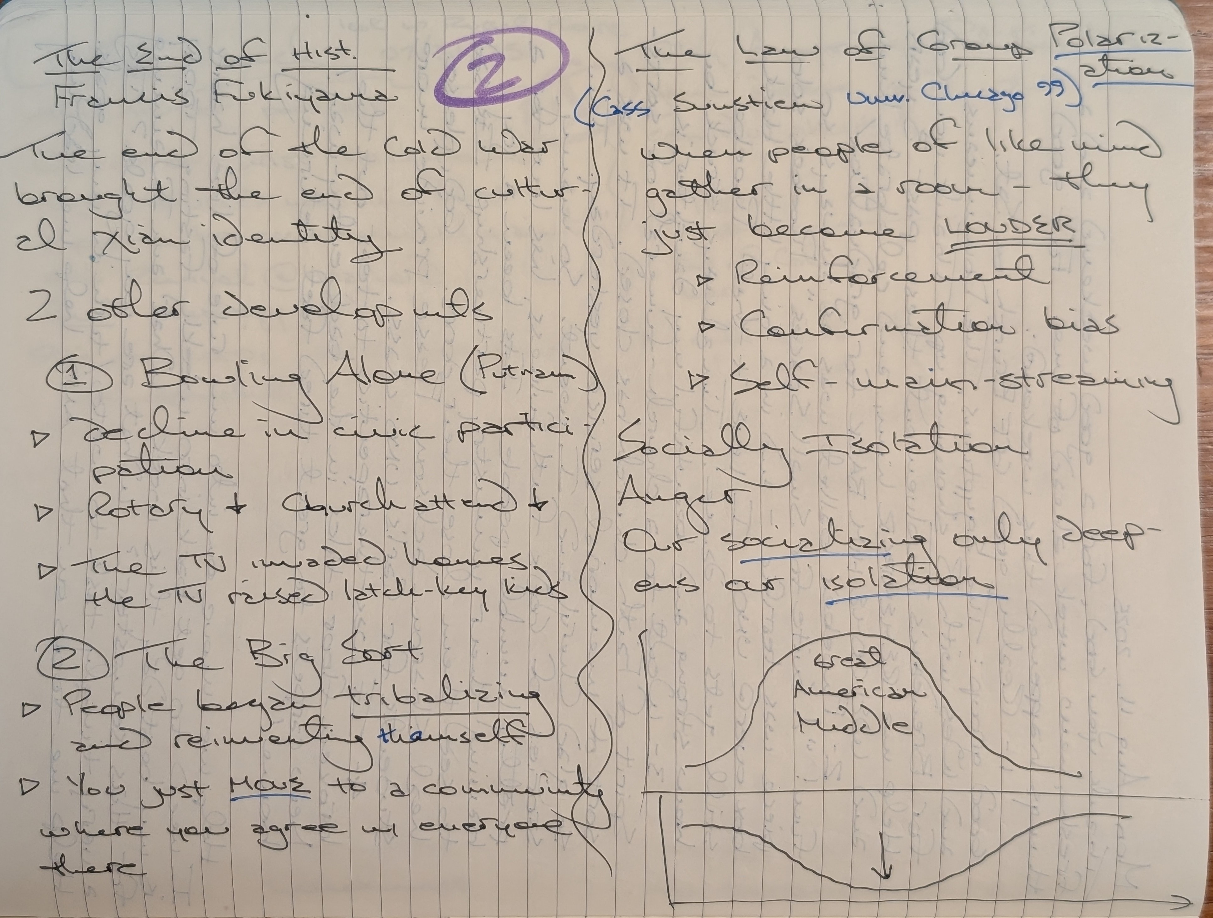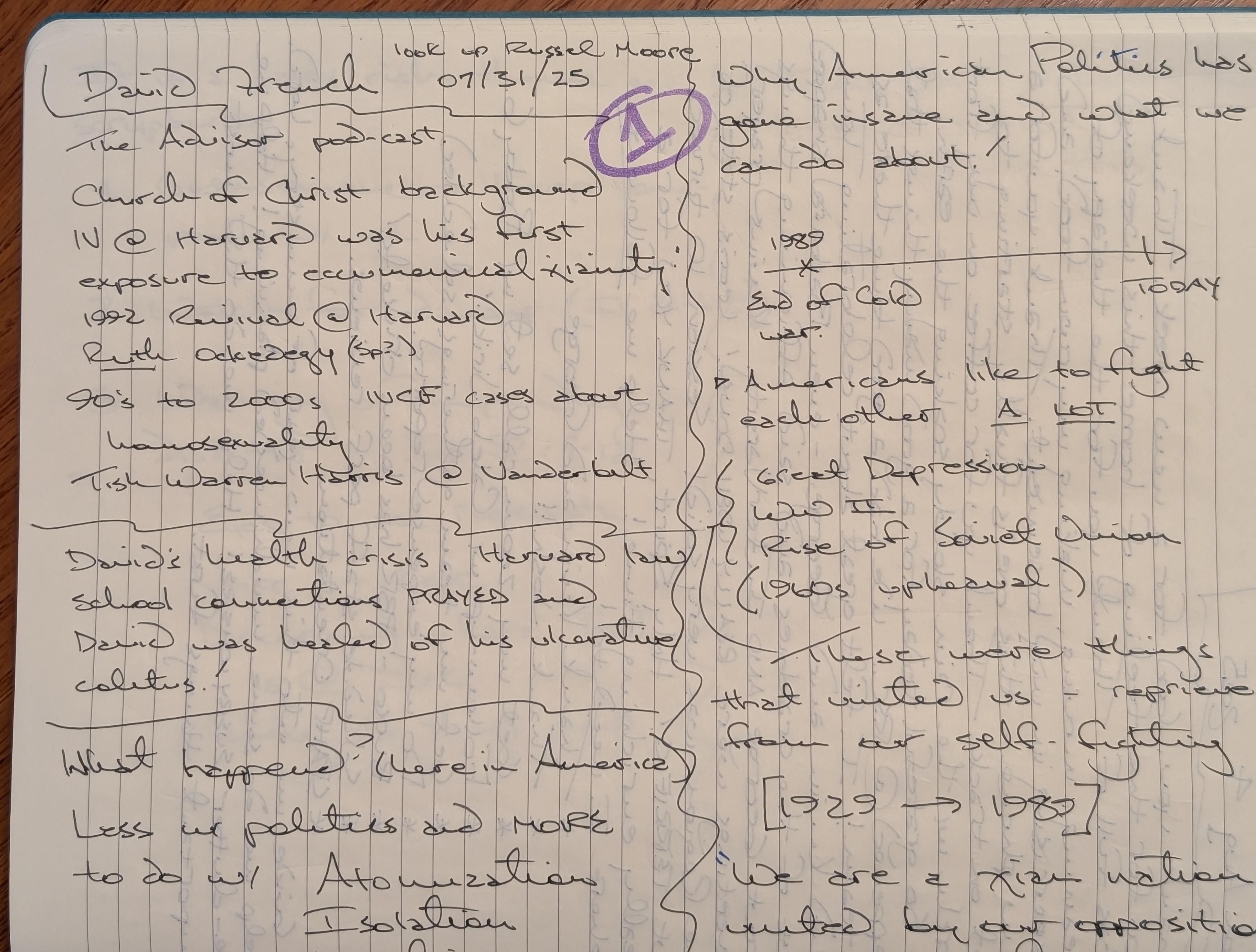 My scrawlings while David French was talking: (Good luck figuring this out! OR, just get the book The After Party!)